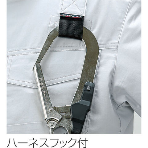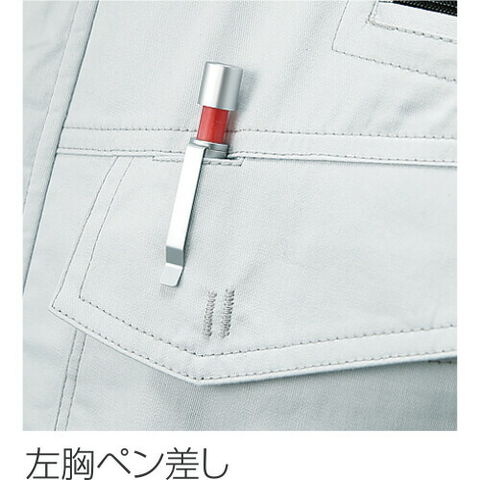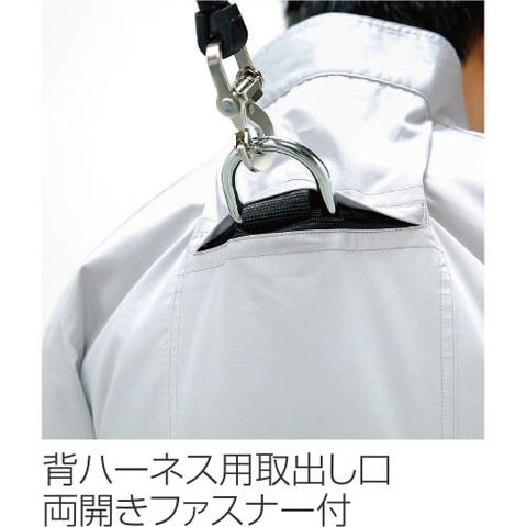 | 背部ランヤード用取り出し口(両開きファスナー付き)、ランヤード用フックハンガー、ファンキャップ留具、衿裏吸汗メッシュ、立体通風メッシュ、肩パッド、左胸ペン差し、左袖ペン差し、リラックスカット |
