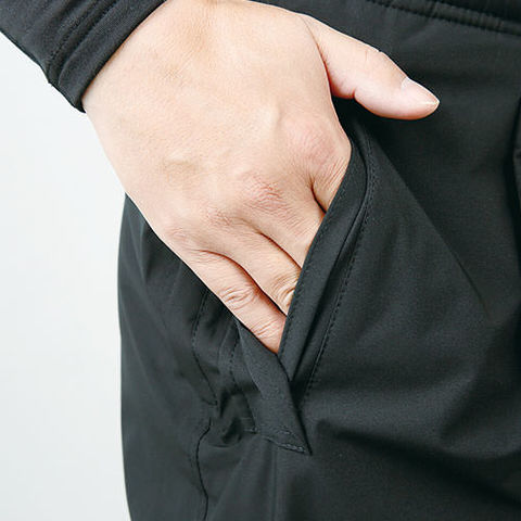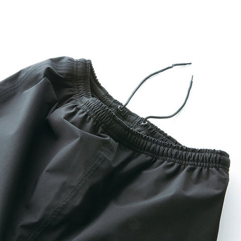 | パンツ脇ポケット逆玉&水返し、パンツウエスト調整紐&脇ゴム、反射プリント |