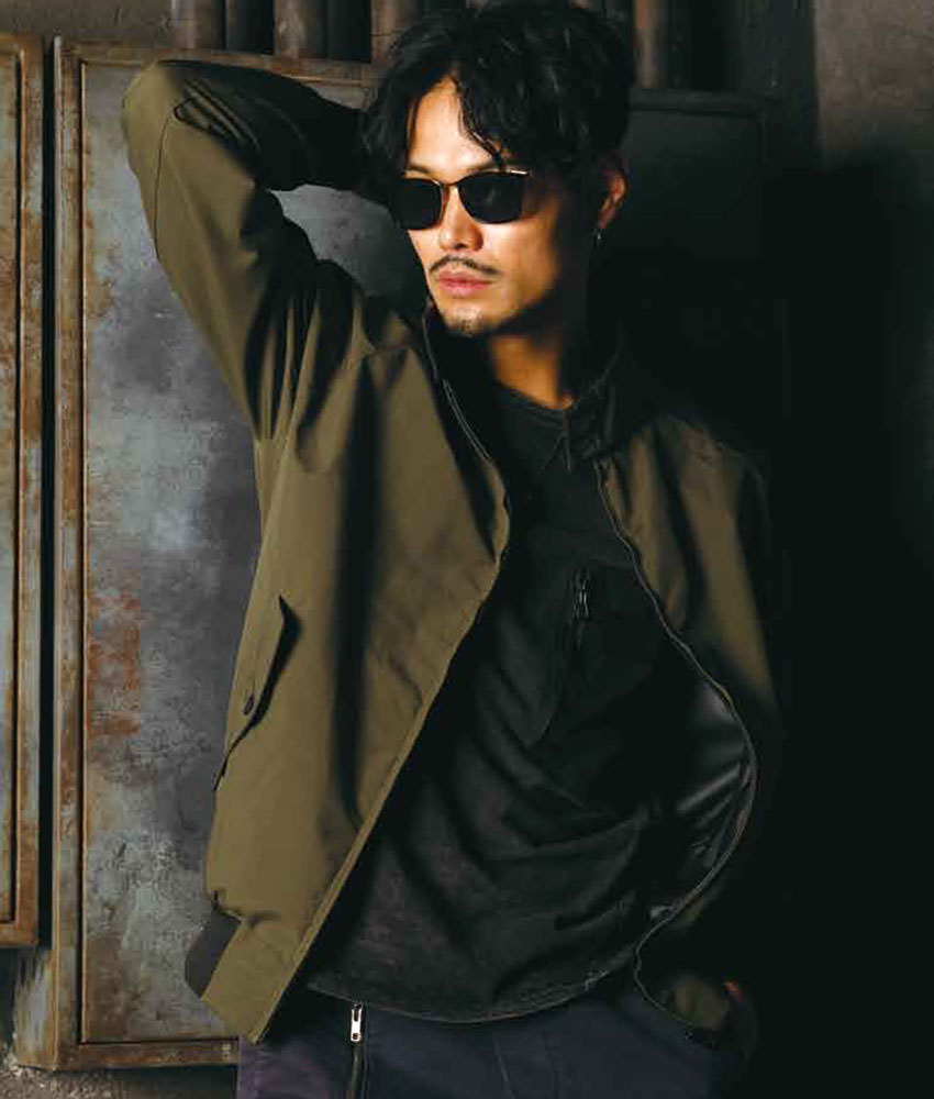 | シンプルながら存在感のある立ち襟、ストレッチ素材、左右脇ポケット、衿裏ジャージ、袖口・裾ジャージ、左袖ペン差し |