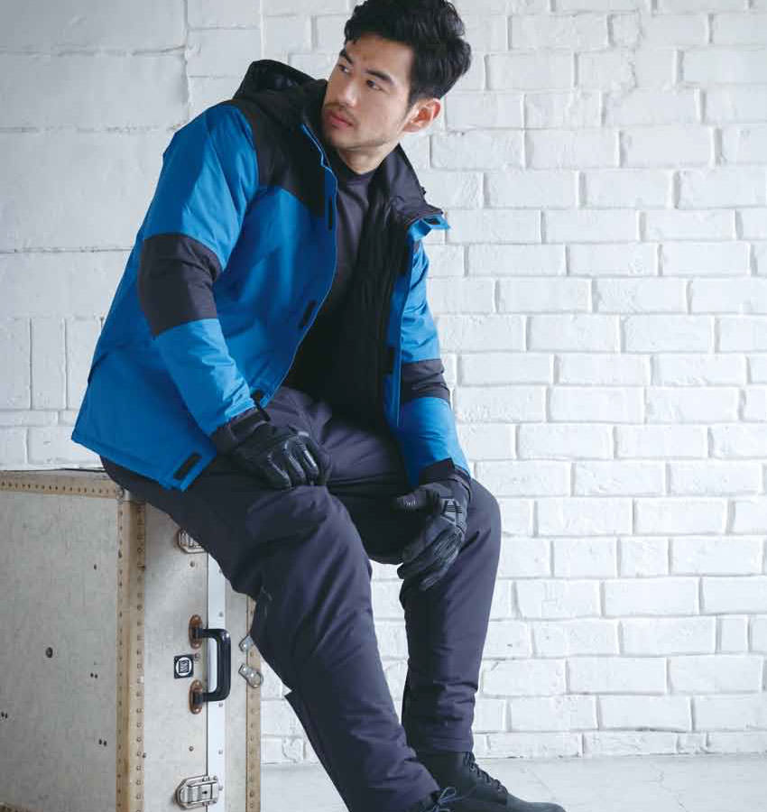 | しっかり防水、しかもムレにくい グラフェン再生中綿と裏地のブラックアルミプリントがスフれた保温性を発揮 防水性を高めるシームテープ加工を採用し防水防寒を追求したユニフォームです。 |