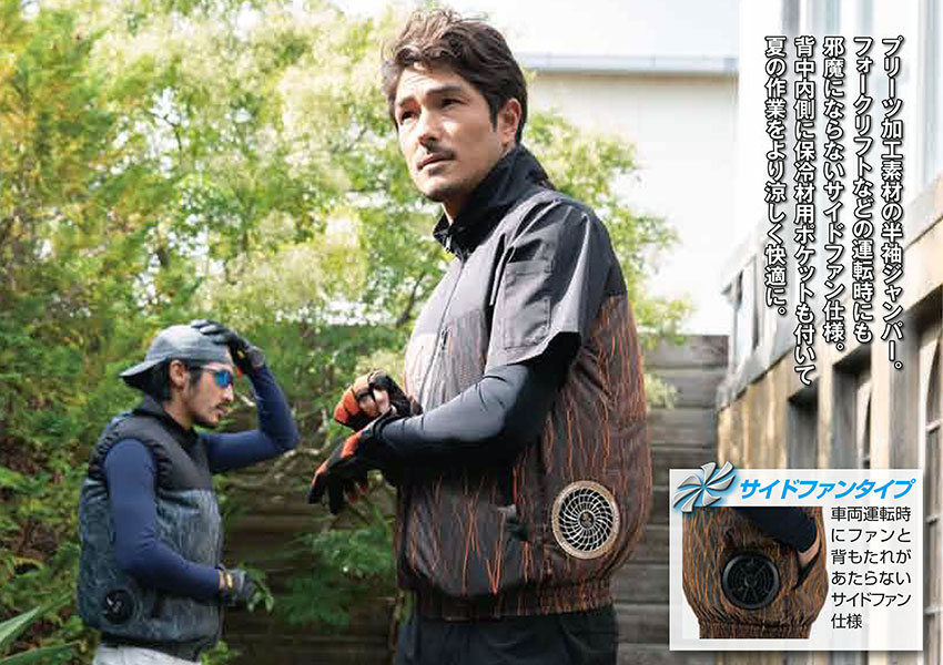 車両運転時にも邪魔にならないサイドファン仕様の半袖ジャンパー