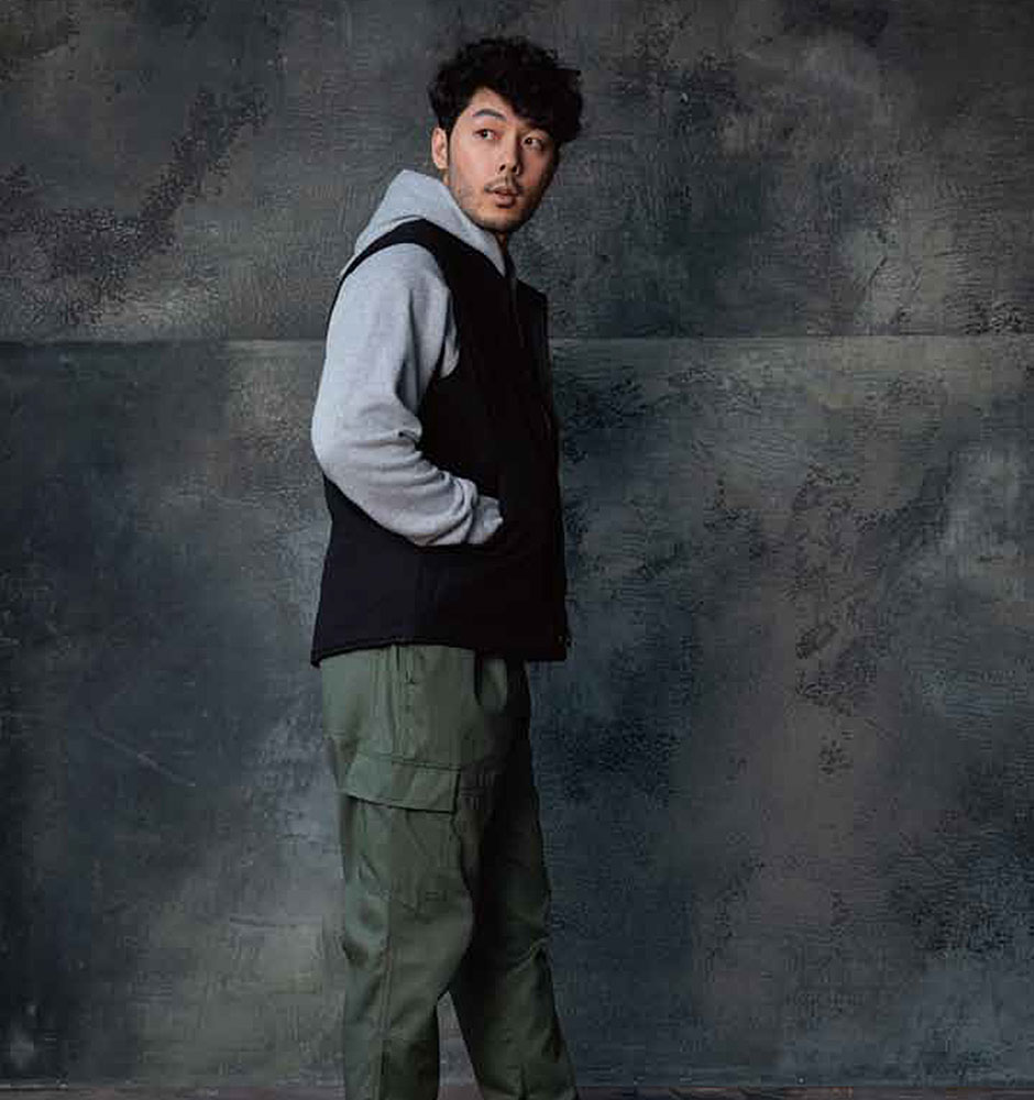 ゆったりとしたシルエットとウエストゴムで楽に軽い感覚で履きこなせるシェフカーゴパンツ