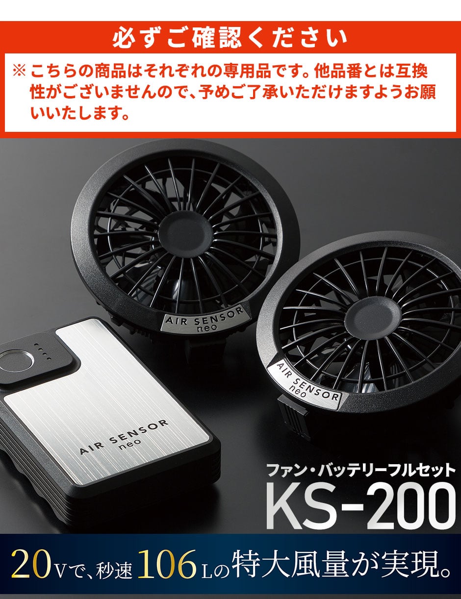 EFウェア用ファンバッテリーセット クロダルマ AIR SENSOR neo KS-200シリーズ ファン・バッテリーフルセット 2024年モデル KS-200 熱中症対策 作業着 作業服 春夏 ファン 扇風機 涼しい 猛暑対策 熱中症対策 炎天下 酷暑