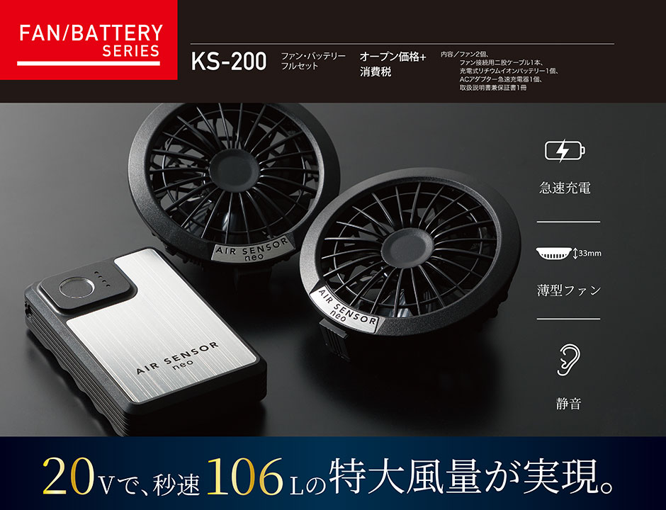 | KS200シリーズ:急速充電、薄型ファン(33mm)、静音 |