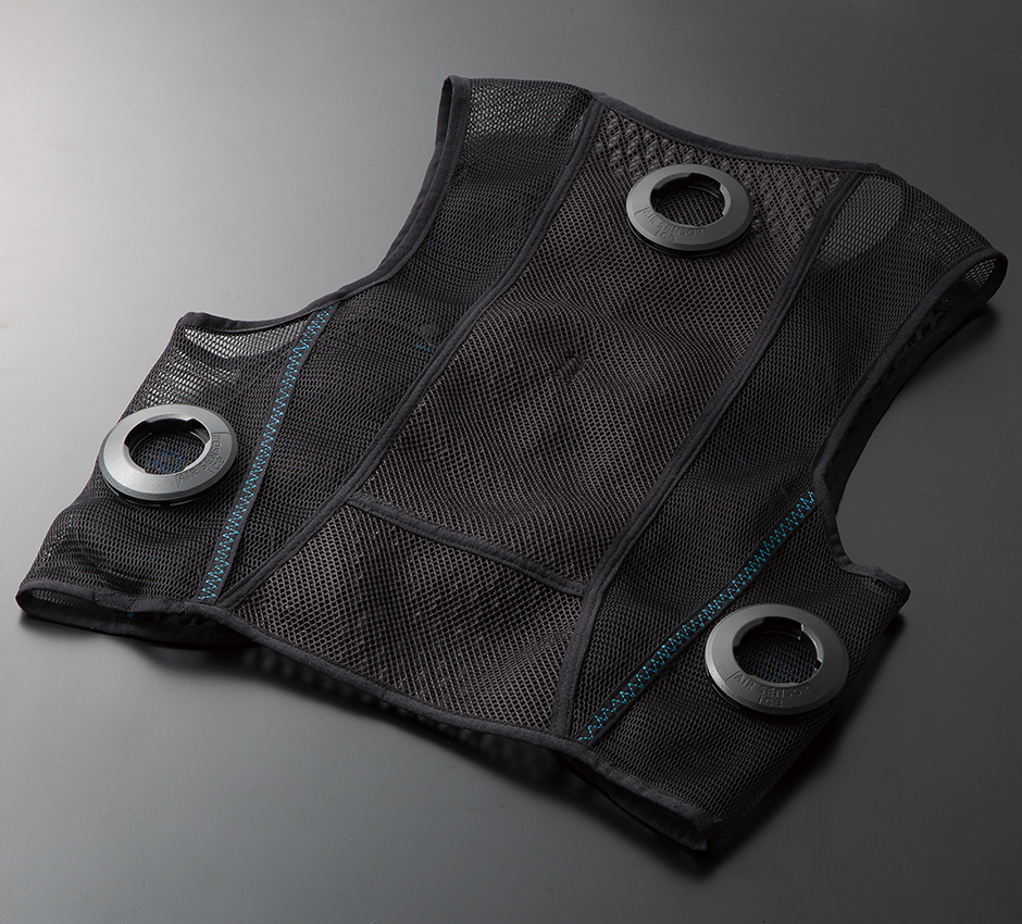■薄手素材のベストだからかさばらずファン付きウェアのインナーとしても着用可能
