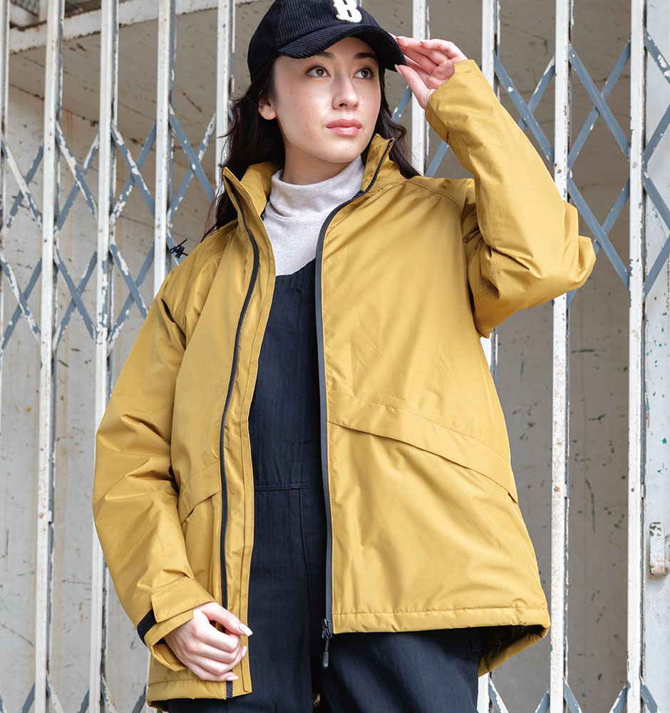| 耐水圧、透湿性に優れた濡れないムレない防水防寒ジャケット 防水性、防風性はもちろんゴールドアルミプリント採用で優れた保温性も発揮 襟元にフードを収納できるインフード仕様 |
