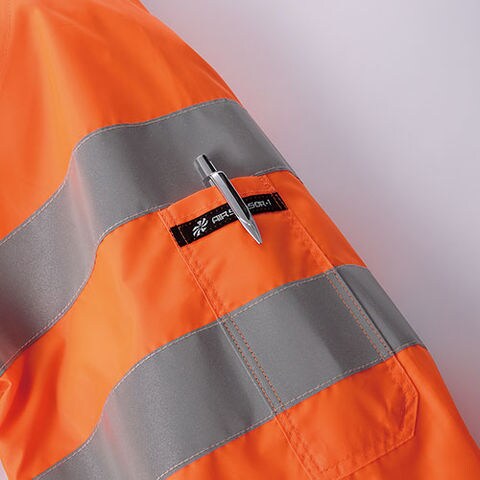 | 左袖ペン差し、反射テープ |