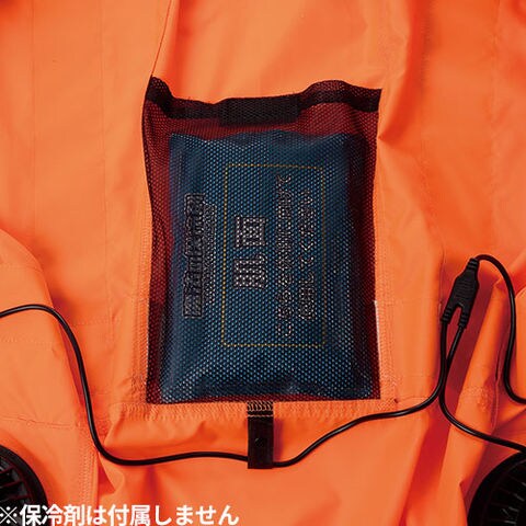 | 車両運転時にファンが背もたれがあたらないサイドファン仕様 背中から首にかけて立体的に風の通りを良くするメッシュ&衿裏メッシュ 首元に風を誘導するために背に通気空間をつくり風を誘導し涼しさがアップ 背中には大きめの保冷剤ポケット(300gまで収納可能) |