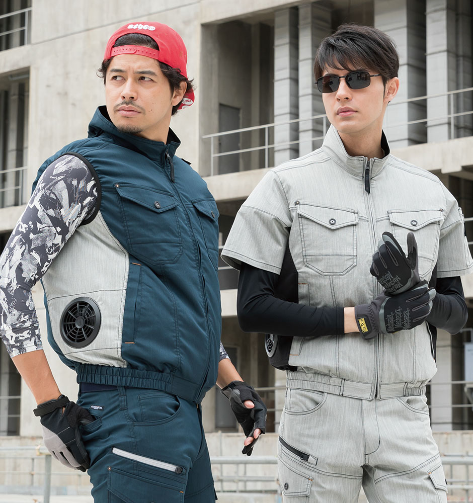 ストレッチ性に優れたサイドファン仕様の電動ファン対応ウェア