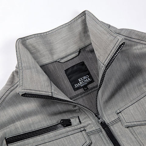 | ●生地ストレッチ30% ●黒原着糸 ●右袖再帰性反射材 |