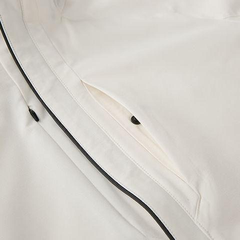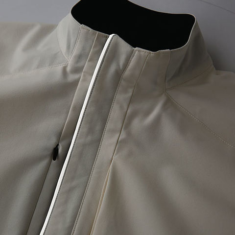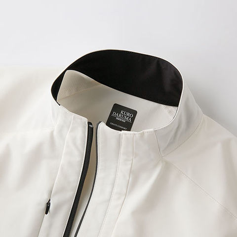 背ネーム、前立反射パイピング、右胸ファスナーポケット、左胸ドットボタン隠しポケット、左袖ペン差し、袖調整ボタン、左裾ドローコード、背裾反射プリント、ラグランスリープ、両脇消臭テープ