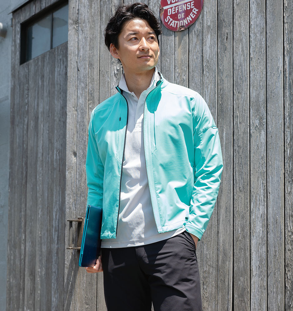 国内産原料を使用し優れたストレッチ性、制電性、消臭性、吸水速乾を装備