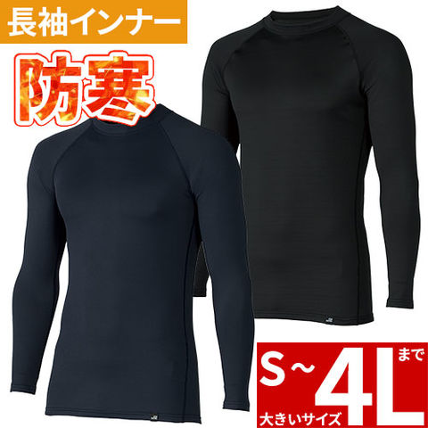 防寒インナー 長袖 長袖アンダーレイヤー 47421 冬用 暖かい 蓄熱 保温 裏起毛 静電気帯電防止 秋冬 アウトドア キャンプ トレッキング 登山 スポーツ スキー スノーボード 現場 建築 建設 土木