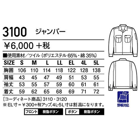 作業服 ブルゾン 作業着 ジャケット 野帳対応 綿・ポリエステル混紡 ジャンパー ジャンバー 上着 長袖 通年 秋冬 自重堂 TomoeSAKURA 3100 おしゃれ かっこいい 人気 シンプル 定番 企業 法人 作業 ユニフォーム 仕事 土木 工事 大きいサイズ 4L 5L