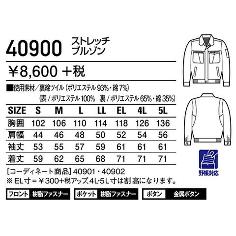 作業服 ブルゾン 作業着 ジャケット ストレッチ 制電 帯電防止 野帳対応 ジャンパー ジャンバー 上着 長袖 通年 秋冬 自重堂 40900 おしゃれ かっこいい 人気 企業 法人 作業 ユニフォーム 仕事 土木 工事 現場 大きいサイズ 4L 5L