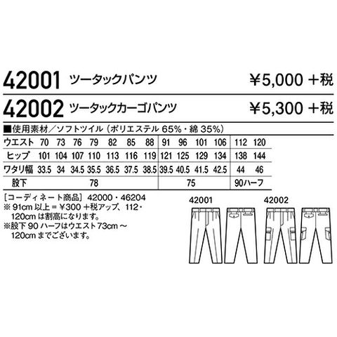 自重堂 作業服 42002 ツータックカーゴ 秋冬 メンズ 作業着 ポケット付き ボトムス ワークウエア 通年 カーゴパンツ おしゃれ かっこいい 人気 ズボン 作業ズボン 作業パンツ 作業 工事 土木 塗装 DIY diy
