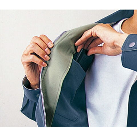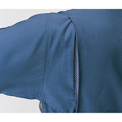 涼しく着られるから夏場の作業に最適なユニフォームです。その理由は、通気性に優れた素材である「エアパス」の存在。袖を通せばわかる爽やかな通気性が魅力の一着。