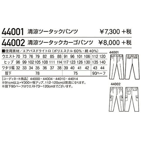 自重堂 作業服 44001 ツータックパンツ 春夏 メンズ 作業着 腿ポケット無 ボトムス ワークウエア スラックス
