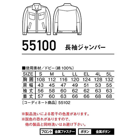 自重堂 Jawin 作業服 55100 長袖ジャンパー 春夏 メンズ 作業着 ワークウエア