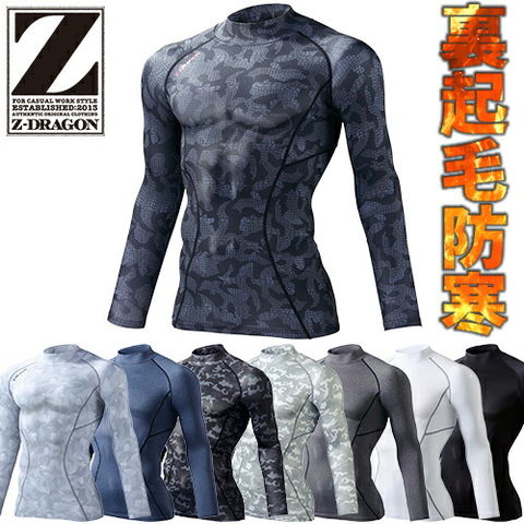 防寒インナー メンズ 自重堂 長袖 ハイネックロングスリーブ 78104 秋冬用インナー コンプレッション ホットインナー 暖かい長袖シャツ Z-DRAGON Zドラゴン 人気 おしゃれ 吸汗速乾 消臭 抗菌 裏起毛ストレッチ スポーツ