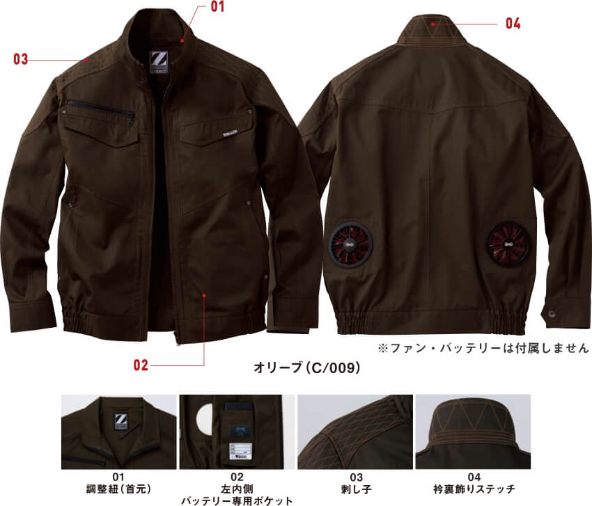 Z-DRAGONで人気の 75400 のデザインをベースにした空調服 長袖ブルゾン。