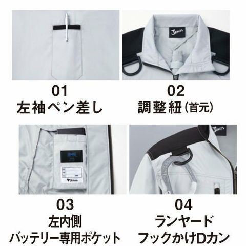 遮熱、UVカット、UPF50+、撥水加工、野帳対応、フルハーネス安全帯対応