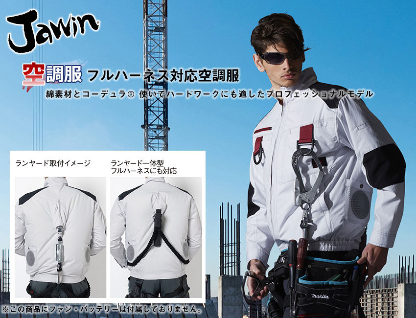 自重堂 Jawin 空調服 服のみ 涼しい 熱中症対策 空調服長袖ブルゾン 54100 墜落制止用器具 フルハーネス対応 作業着 作業服 春夏 2020年春夏新作 綿100% ジャウィン メンズ