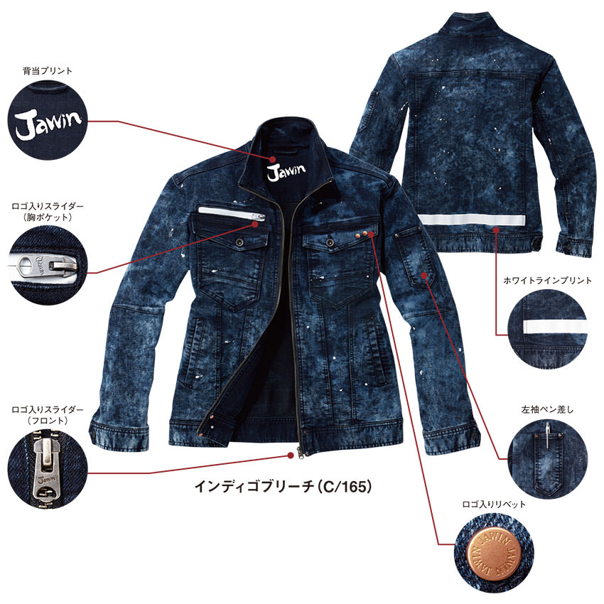 ホワイトで統一感を出したプリントや附属使いと洗い加工で生地に表情をつけ洗練されたデザインに仕上げたJawin STRETCH DENIMの新シリーズ