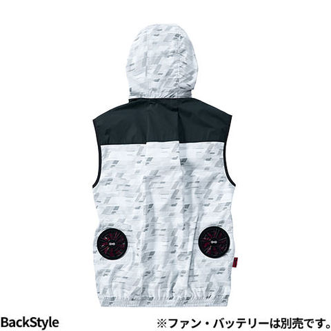 | 首元・調整紐、左内側バッテリー専用ポケット、保冷材用メッシュポケット、首元タック入り、フードパンチング仕様(周囲の音を聞こえやすくし視界も確保します。) |