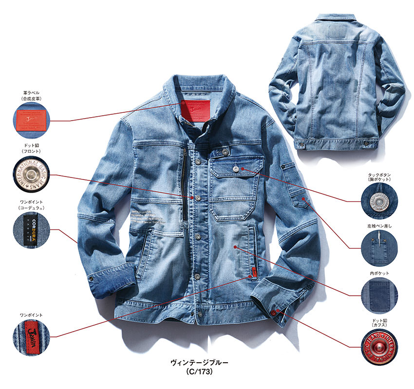 | Jawin 接触冷感コーデュラストレッチデニム長袖ジャンパー |