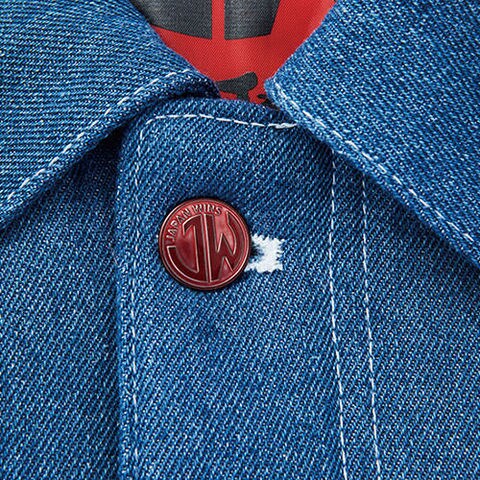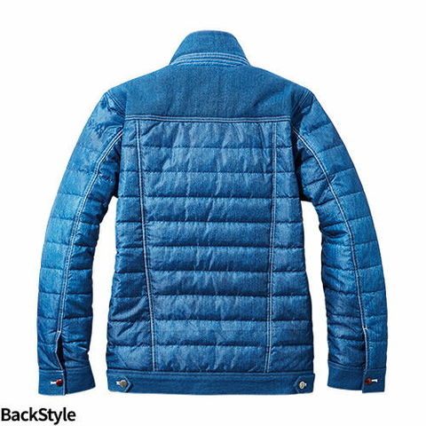 デニム生地とデニムプリント生地を組み合わせてデザイン性を追求した防寒ジャンパー