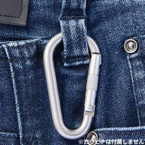| タックボタン、カラビナループ、マルチポケット、ロゴ入りスライダー、後ろポケットワンポイント、ドットボタン、革ラベル(合成皮革)、ロゴ入りファスナー |