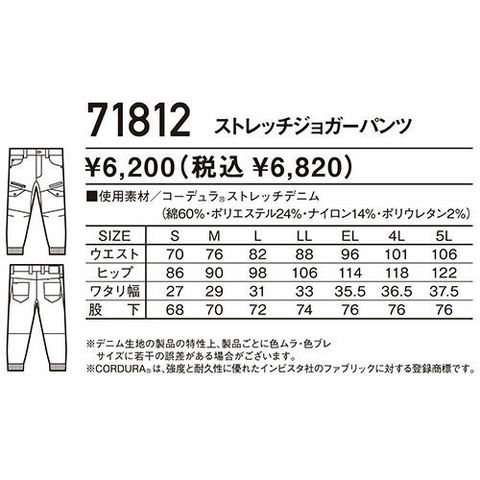 作業服 デニム 自重堂 Z-DRAGON ストレッチジョガーパンツ 71812 作業着 通年 秋冬 ストレッチ デニム カッコいい デニムパンツ デニム 作業ズボン 作業パンツ パンツ ワーク ワークウェア ワークパンツ おしゃれ 人気