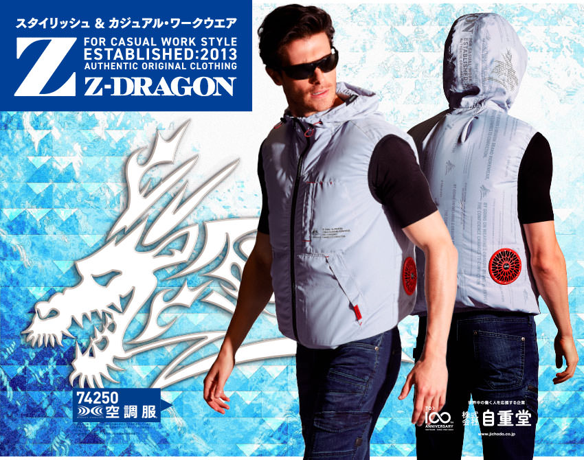 背中にプリントしたZ-DRAGONのブランドコンセプトが存在感を放つ空調服ベスト