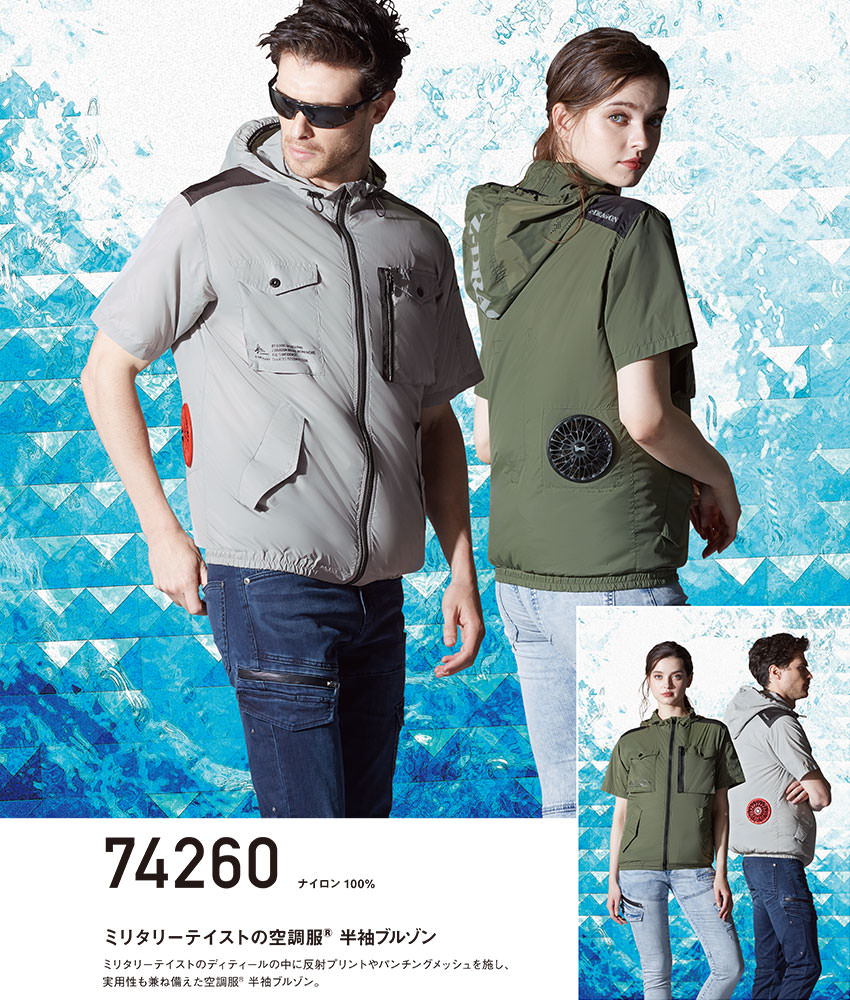 EFウェア 半袖 自重堂 Z-DRAGON 空調服半袖ブルゾン フード付 2022年モデル 74260 作業着 作業服 春夏 電動ファン 扇風機 涼しい 暑さ 猛暑 酷暑対策