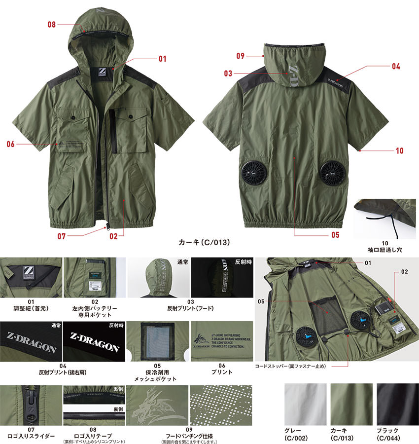 Z-DRAGON 空調服半袖ブルゾン フード付 2022年モデル