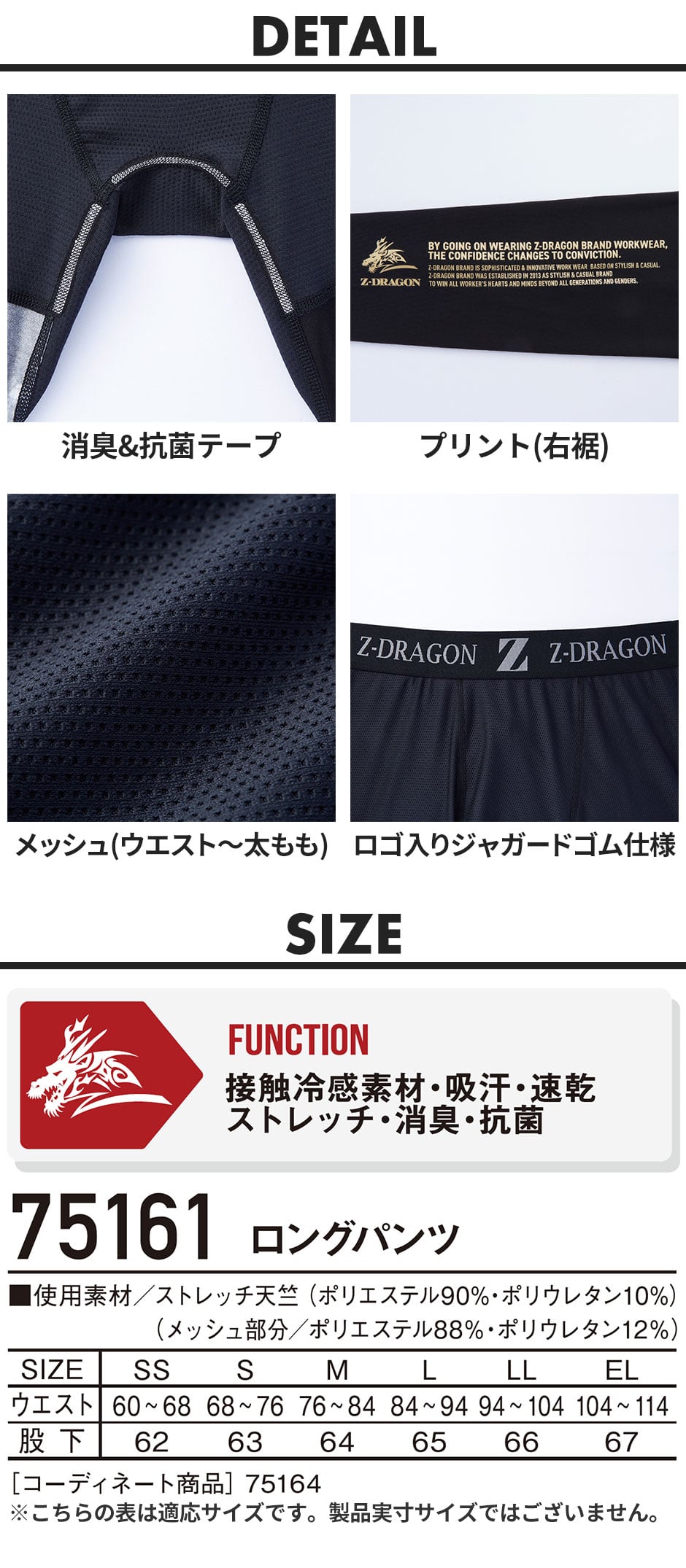 | 夏に最適な通気性の高いメッシュを使用 ゴールドプリントがアクセントのアシンメトリー新感覚コンプレッション 夏用インナーで筋肉の疲労軽減やケガ防止、冷え対策や風邪予防をすることができます。汗をかいた後に体温が奪われて、体が冷えるのを防ぐ!体温調整の役割も期待できます! 伸縮性があり動きやすく作業効率があがる、生地が伸びる、しゃがむことが多い現場に最適です。 すぐに乾くので汗によるべたつき、汗冷えを防ぎ、肌面をいつも快適に保ちます。 ムレない、ムレにくい、熱とムレを逃がす。 適度な締め付けにより疲労の元になる無駄な筋肉の揺れを防ぎ、スタミナの向上や疲労感の軽減など、さまざまな面で体をサポートしてくれます。 軽量な生地と高いストレッチで、動きを妨げる事無く快適! 空調作業服の下に着用することでさらに冷却効果UP! 高いストレッチで、あらゆる動きに対応! ・両脇両肩消臭&抗菌テープで気になるニオイをブロック! ・ゴムベルトと左袖にZ-DRAGONプリント |