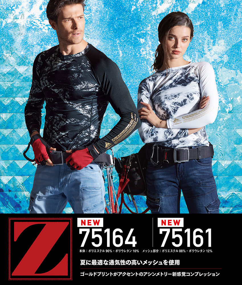 冷感インナー 長袖 メンズ 75164 ゴルフ インナー 夏 クール 接触冷感 吸汗速乾 ストレッチ 消臭 抗菌テープ メッシュ 肌着 下着 作業着 作業服 スポーツ 人気 おすすめ コンプレッション 自重堂 Z-DRAGON ロングスリーブ カモフラ