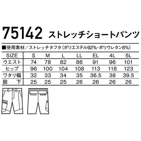 作業服 ハーフパンツ 自重堂 ストレッチショートパンツ 75142 作業着 春夏
