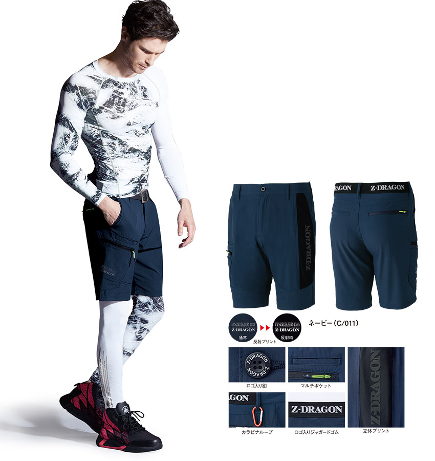インパクト抜群の立体プリントと7つのポケットで収納力にも優れたショートパンツ