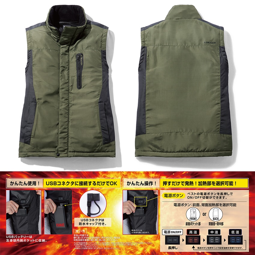 | ご使用前に必ず取扱説明書をお読みください。 洗濯の際は必ずベストからバッテリーを取り外してください。 濡れた手でバッテリーやUSBケーブルを触らないでください。 バッテリーを炎天下などの高温の場所で充電、使用、保管しないでください。 ご使用済みのバッテリーは一般家庭ごみとして廃棄しないでください。 |