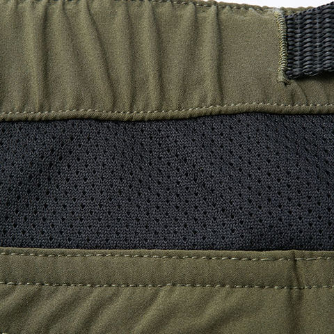 | 反射プリント、ロゴ入り釦、ワンポイント(ベルト端・右カーゴポケット)、二重ポケット(右カーゴポケット、左後ろポケット)、ゴムループ、ベンチレーション(膝上)、メッシュ仕様(腰部分)、ベルト付き、カラビナループ |