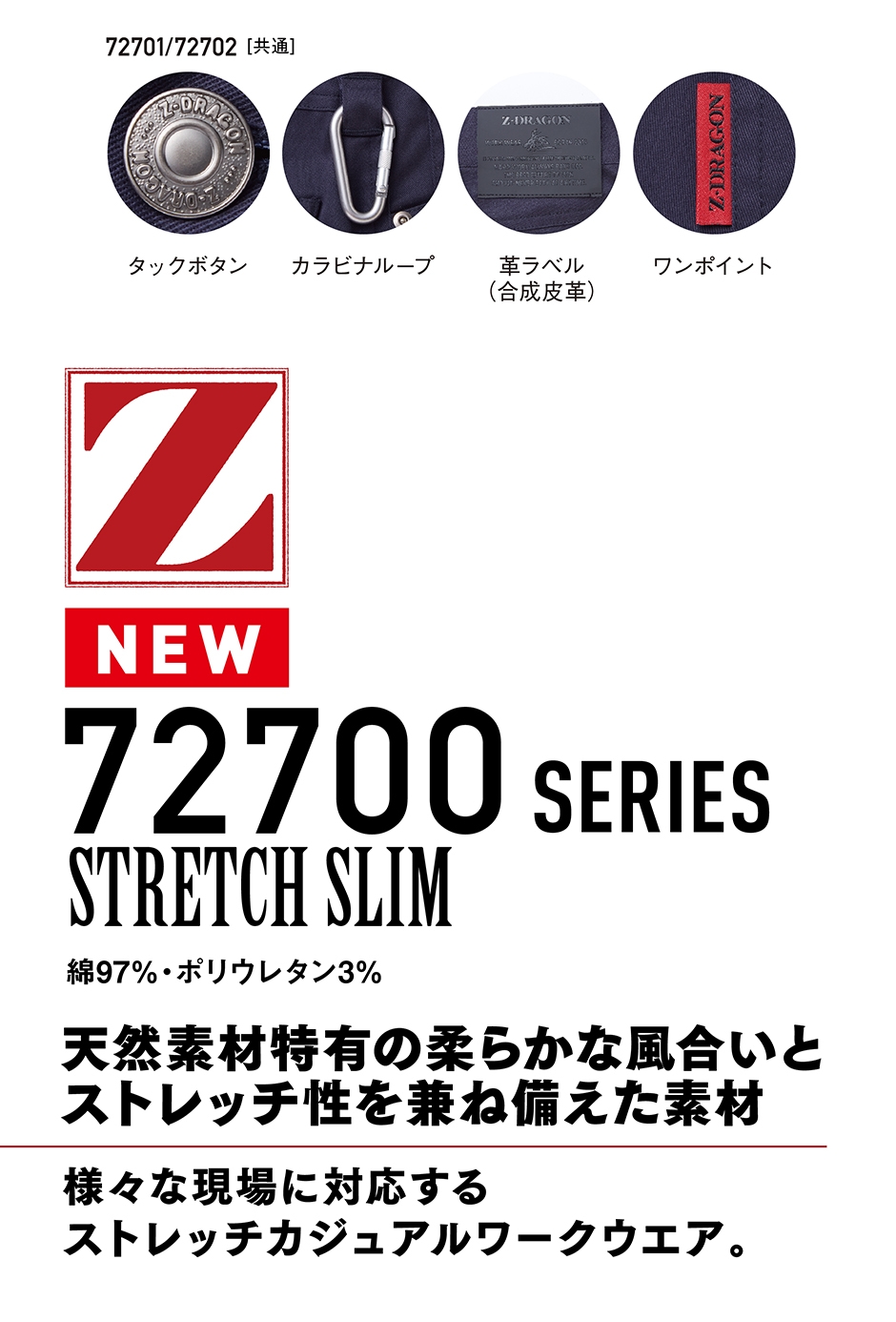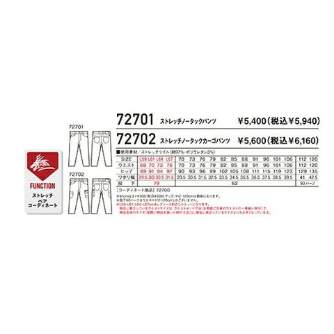 Z-DRAGON ストレッチ ノータック パンツ 自重堂 72701 作業服 作業着 ズボン ボトムス 秋冬 通年 綿 ポリエステル 作業 工事 土木 農業 塗装 DIY diy カジュアル 男女兼用 おしゃれ かっこいい かわいい 可愛い おすすめ