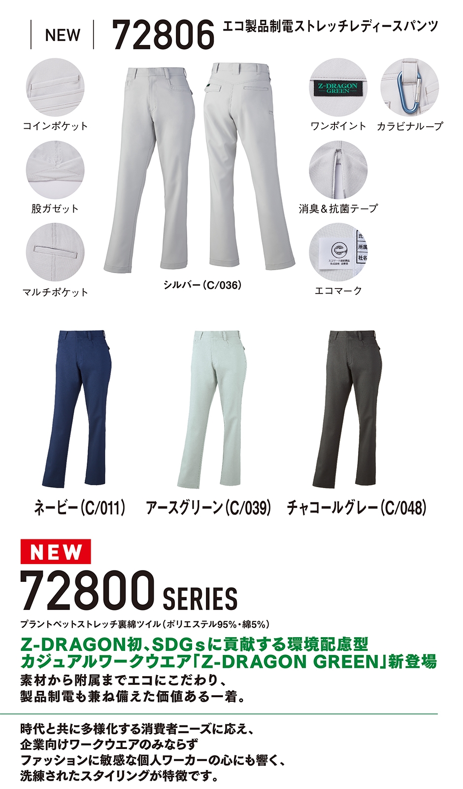 | Z-DRAGON エコ製品制電ストレッチレディースパンツ |