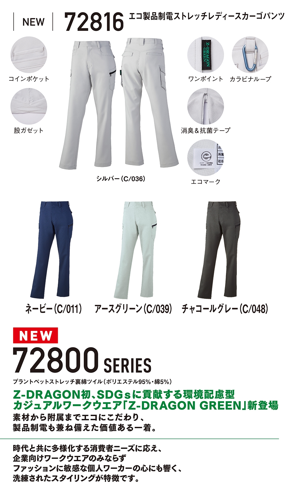| Z-DRAGON エコ製品制電ストレッチレディースカーゴパンツ |