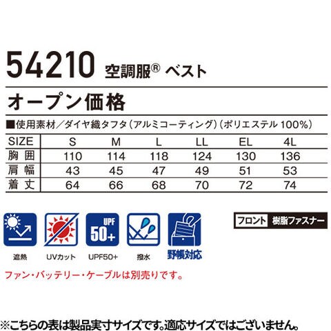 EFウェア ベスト Jawin 空調服(R)ベスト(ファン無し) 2025年モデル 54210 自重堂 作業着 作業服 春夏 サイドファン フルハーネス対応 猛暑 熱中症対策 涼しい 遮熱 撥水 UVカット 屋外 工事 建設 釣り アウトドア スポーツ