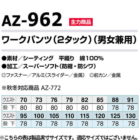 アイトス AZ-962 ワークパンツ(2タック ツータック) AITOZ 作業服 作業着 腿ポケット無 ボトムス スラックス