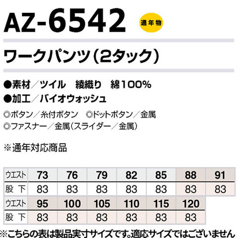 アイトス AZ-6542 ワークパンツ(2タック ツータック) AITOZ 作業服 作業着 腿ポケット無 ボトムス 秋冬 通年 スラックス 作業ズボン 作業パンツ ワークパンツ ズボン おしゃれ かっこいい オフィス ユニホーム 作業 軽作業 外作業 工