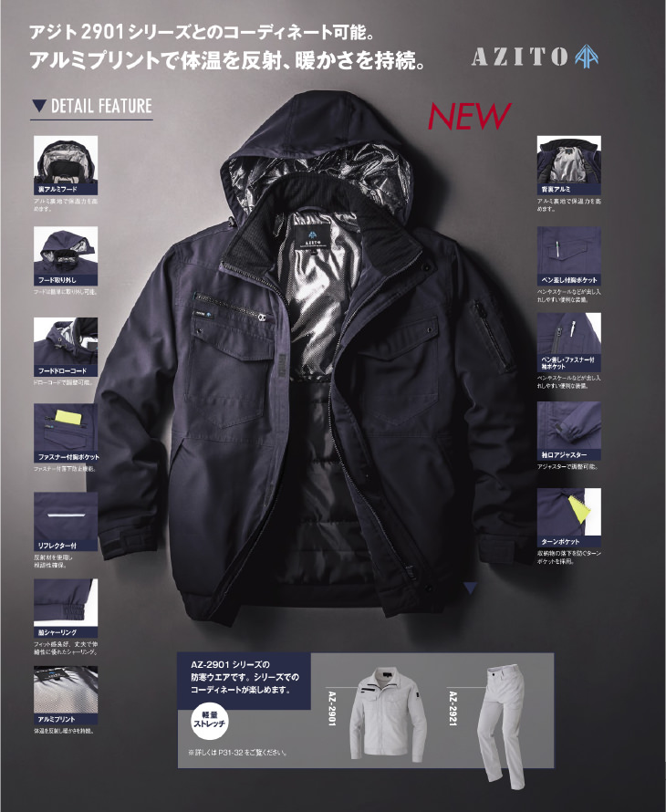 アジト 軽量ストレッチシリーズ(AZ-2901)とのコーディネート可能。