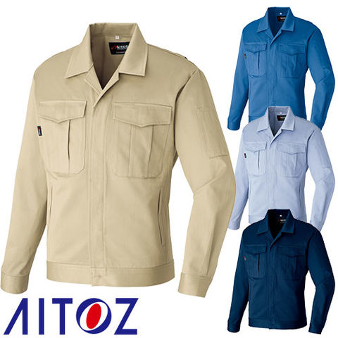作業服 綿 100% ブルゾン 作業着 ジャケット 燃えにくい 天然素材 やわらかい 丈夫 ジャンパー ジャンバー 上着 長袖 通年 秋冬 アイトス AZ-33101 おしゃれ かっこいい 人気 企業 法人 作業 ユニフォーム 仕事 土木 工事 大きいサイズ 4L 5L 6L